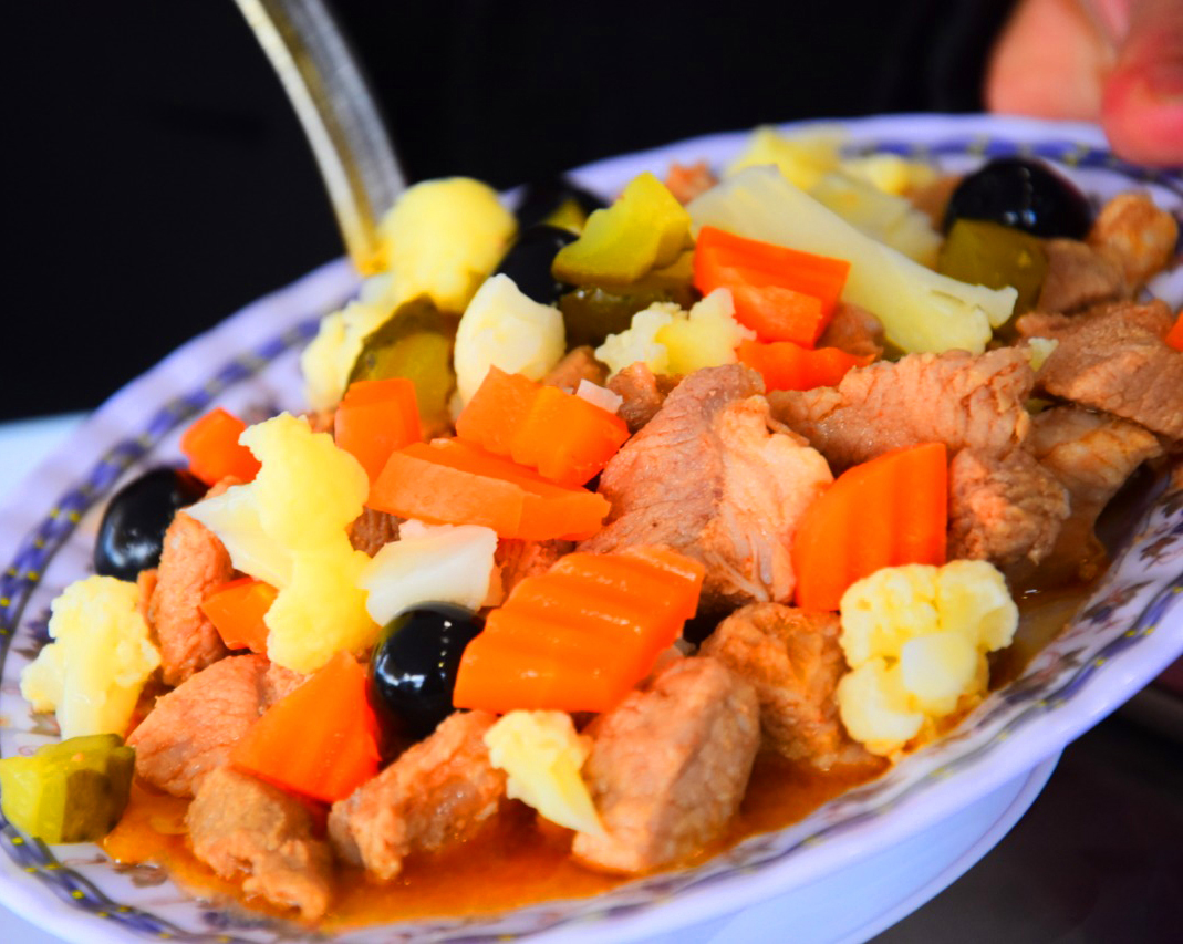 | Pica pau: porco, picles, cenouras e azeitonas |